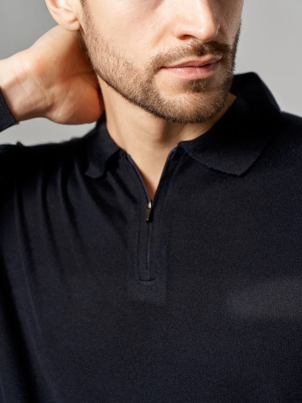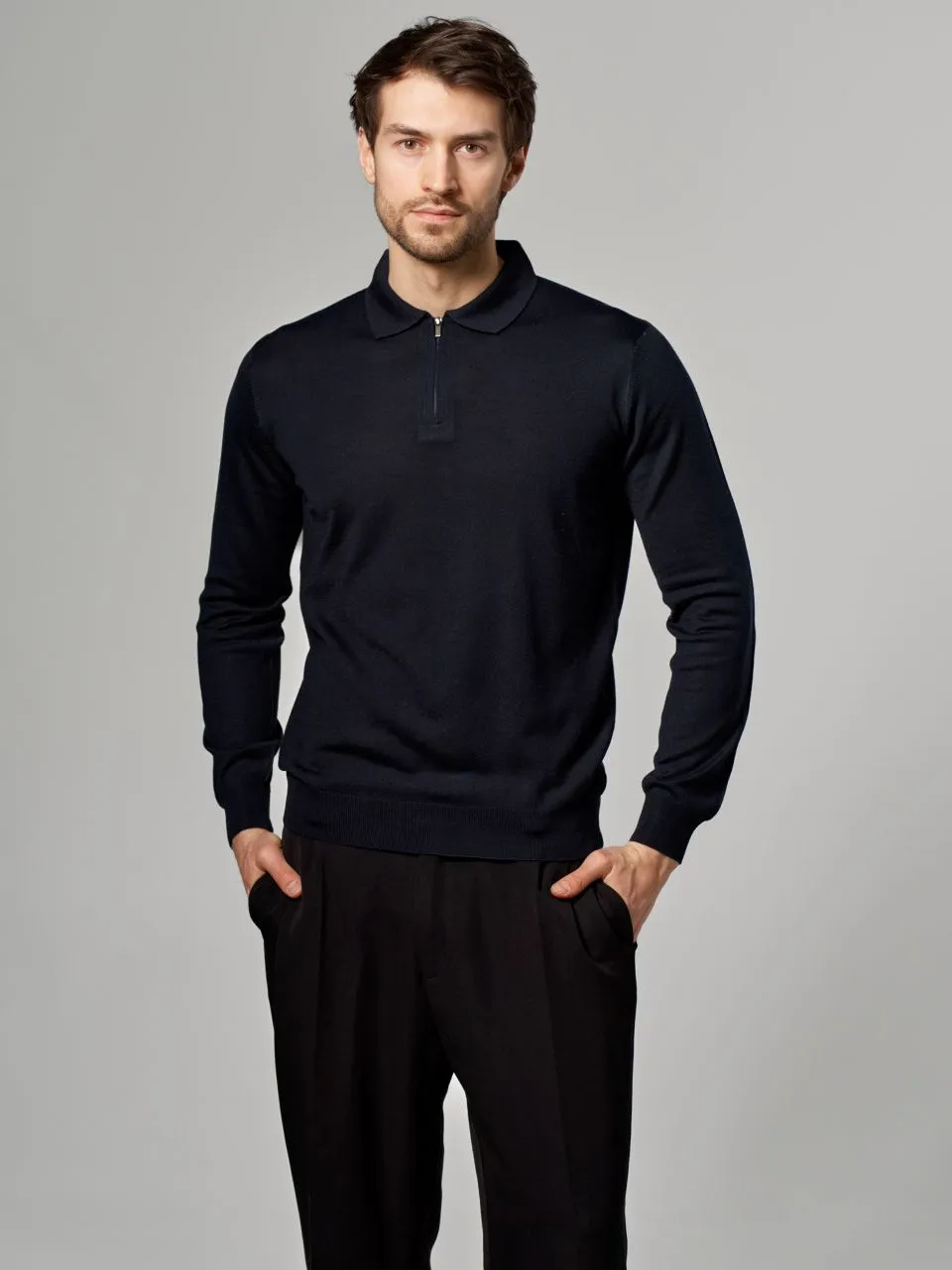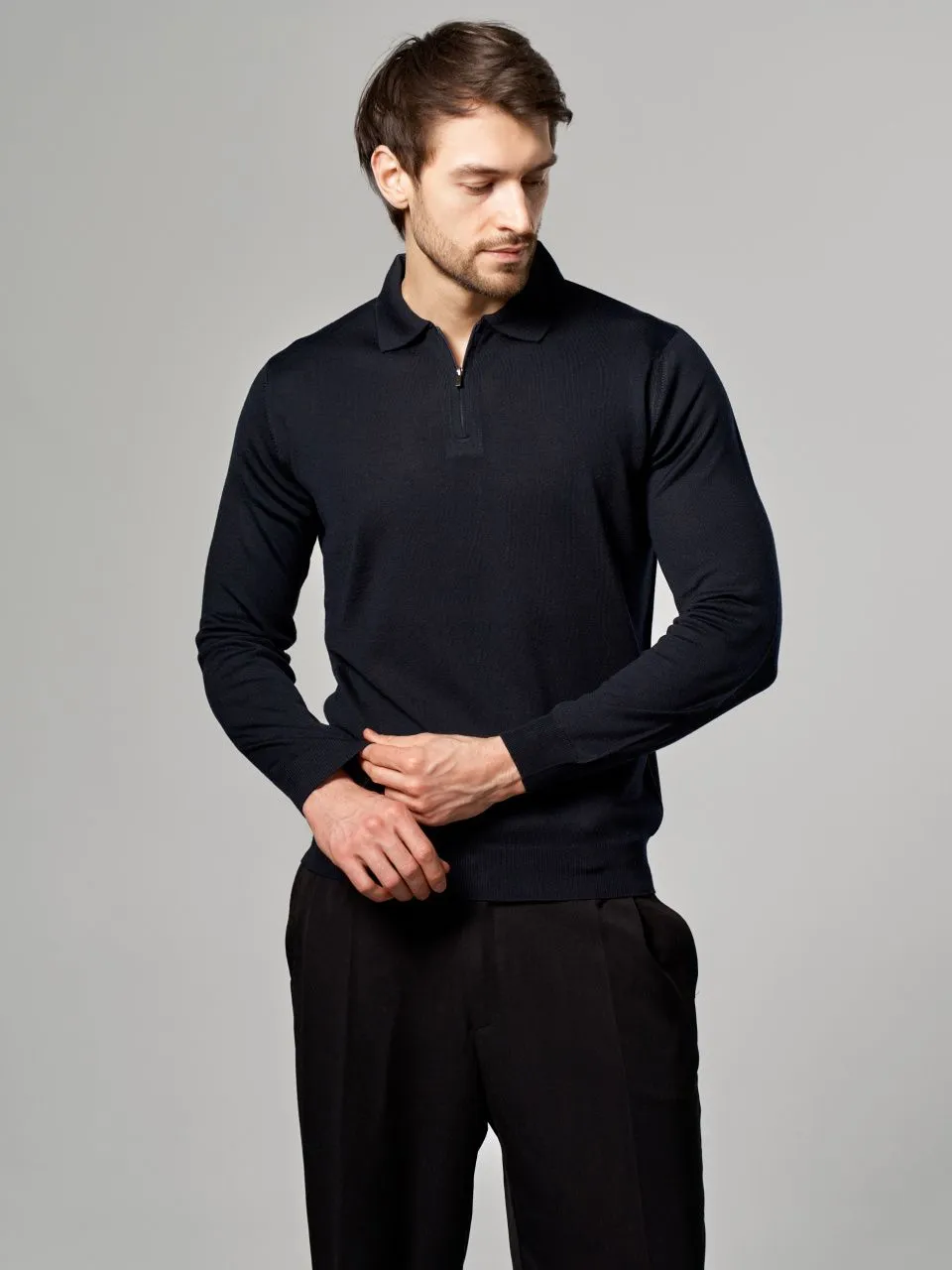 Тонкий джемпер с воротником-поло на молнии из полушерсти