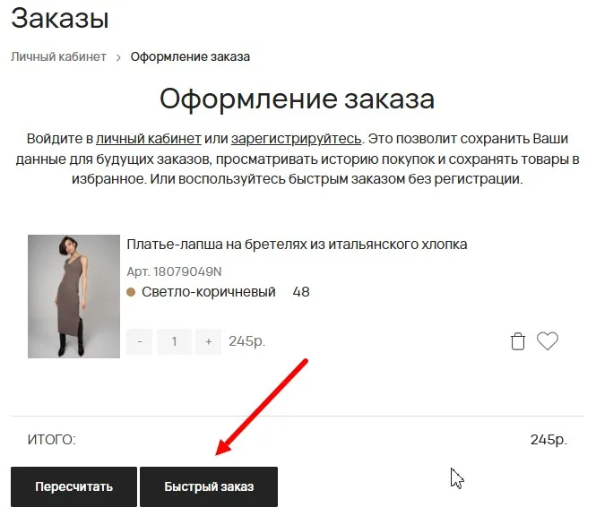 Добавьте понравившиеся товары в корзину. Перейдите к оформлению заказа и выберите опцию «Быстрый заказ».