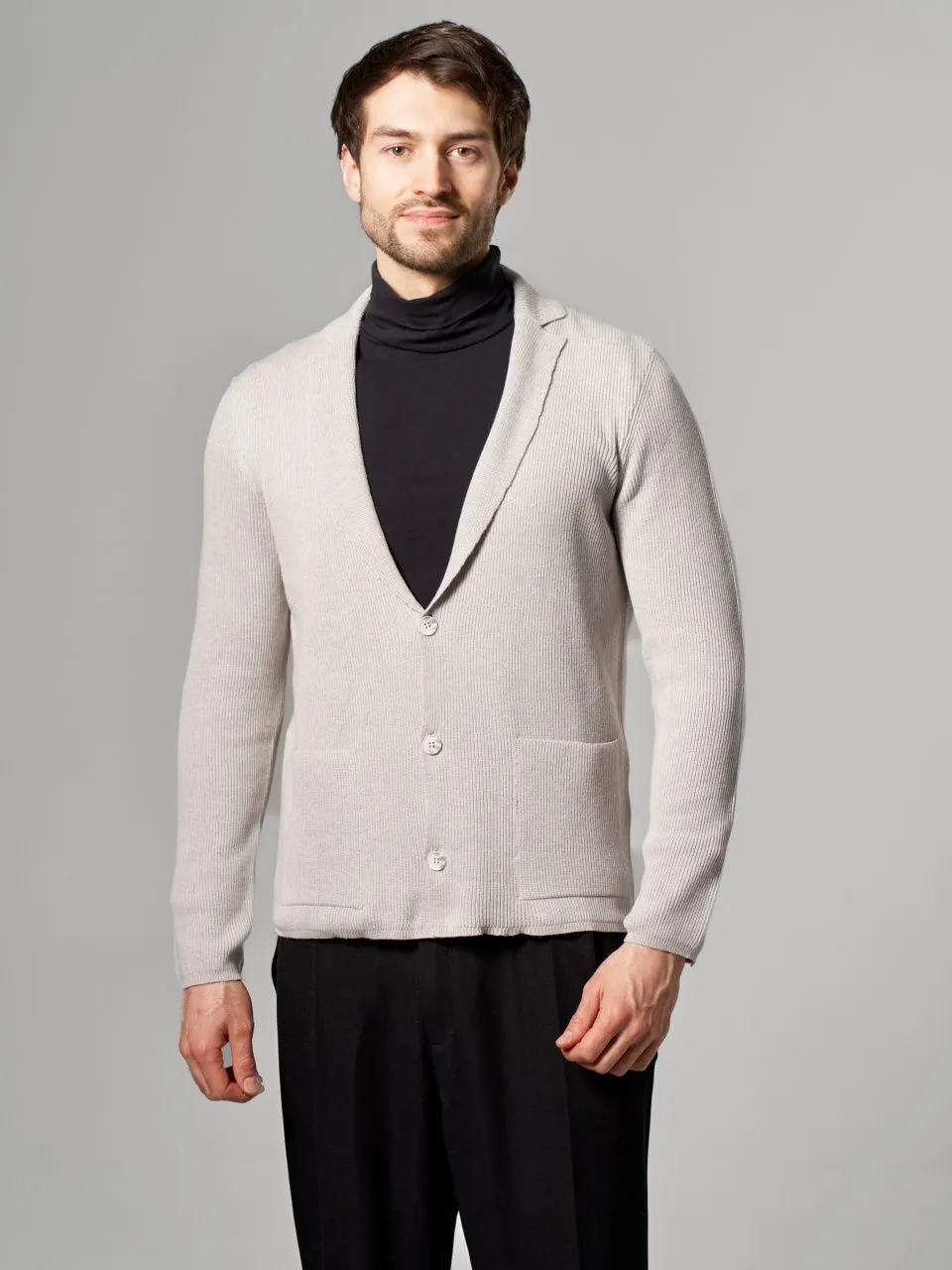 Этот пиджак сочетает в себе лаконичную классическую посадку и утончённый комфорт премиального состава — 90% хлопок и 10% кашемир. Хлопок обеспечивает прочность, воздухопроницаемость и лёгкость в носке, а добавление кашемира придаёт изделию бархатистую мягкость и уютное тепло при носке. Такая смесь делает пиджак универсальным элементом гардероба: он идеален для межсезонья, комфортно ощущается в офисной среде и смотрится стильно в сочетании с футболкой или тонким джемпером.