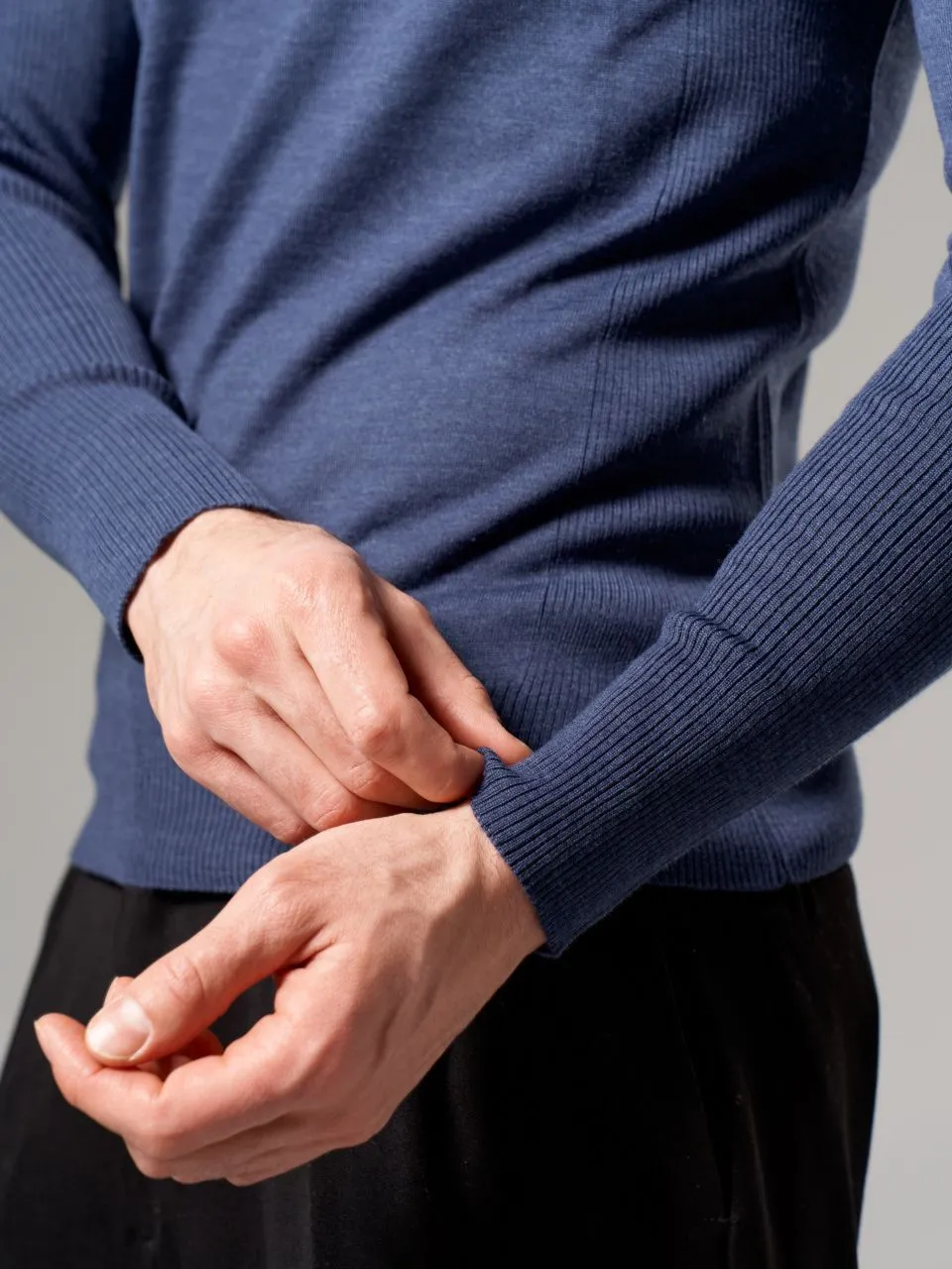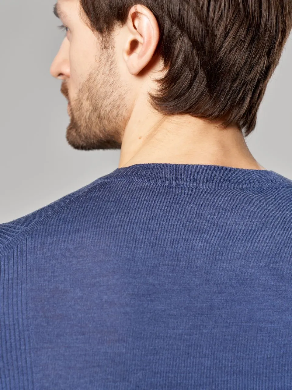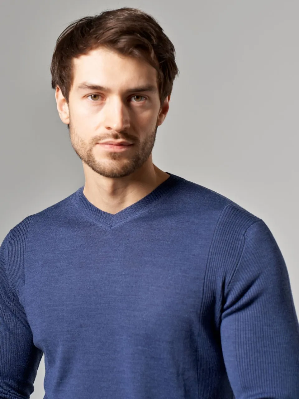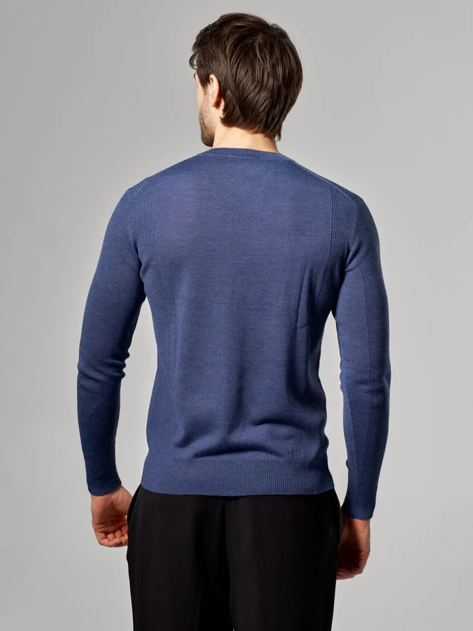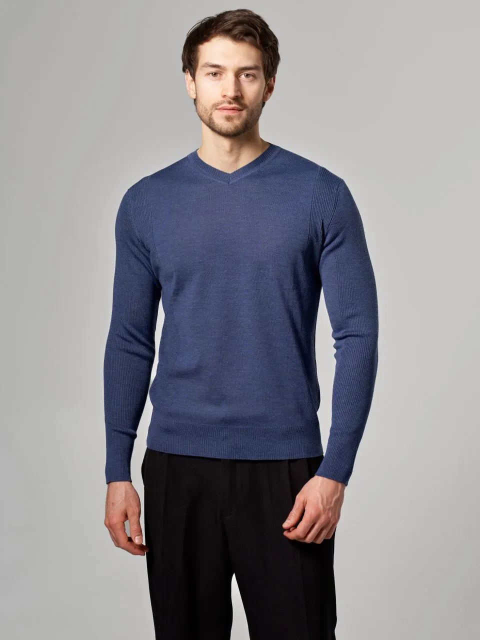 Тонкий мужской джемпер Gerry Ross из полушерсти с V-образным вырезом. • Приталенный силуэт, стандартная длина. • Длинный втачной рукав с рельефной вязкой. • V‑образный вырез горловины с узкой бейкой. • Манжеты и низ связаны плотной резинкой для аккуратной посадки и сохранения формы. Размерный ряд: 48, 50, 52, 54, 56, 58 (посадка по размеру). Этот джемпер из итальянской пряжи: 50% гребенной меринос, 50% акрил. Гребенная обработка шерсти делает полотно тонким и гладким, а акрил придает изделию высокую прочность и износостойкость. Джемпер очень приятен на ощупь, не теряет форму и практически не скатывается даже при активной носке. Качество значительно выше стандартных полушерстяных составов.