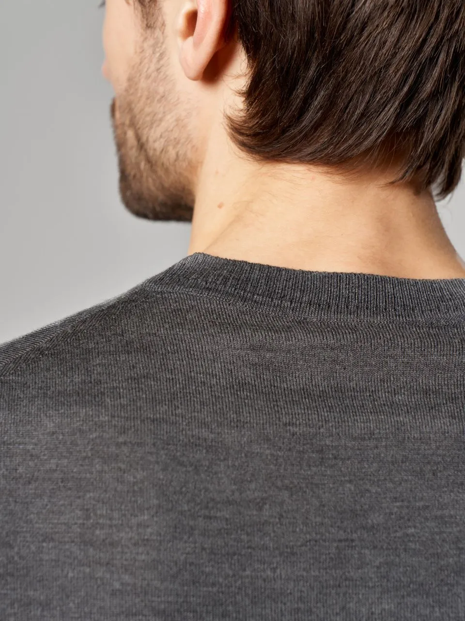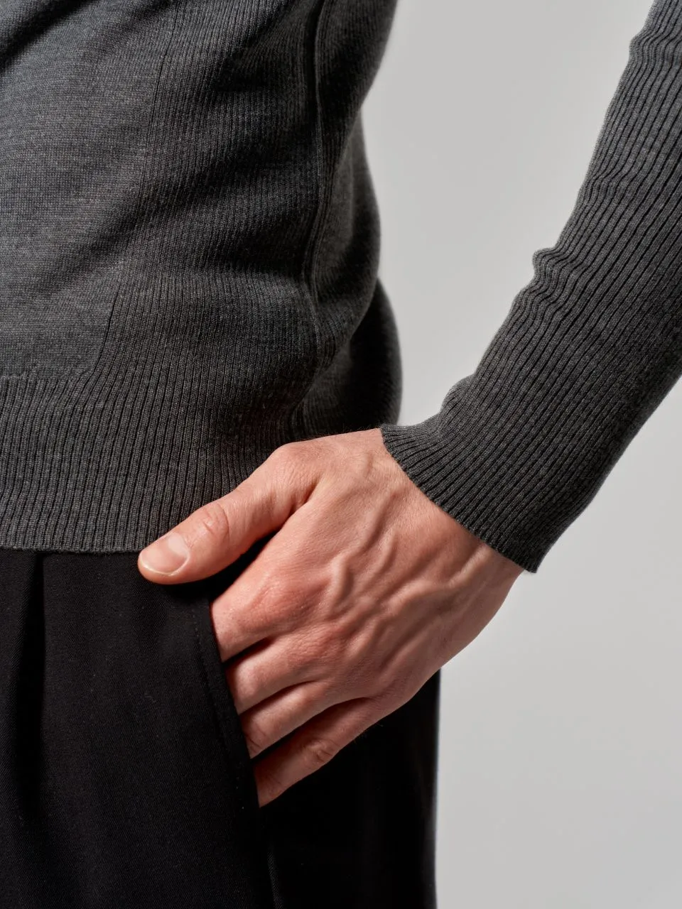 Этот джемпер из итальянской пряжи: 50% гребенной меринос, 50% акрил. Гребенная обработка шерсти делает полотно тонким и гладким, а акрил придает изделию высокую прочность и износостойкость. Джемпер очень приятен на ощупь, не теряет форму и практически не скатывается даже при активной носке. Качество значительно выше стандартных полушерстяных составов.