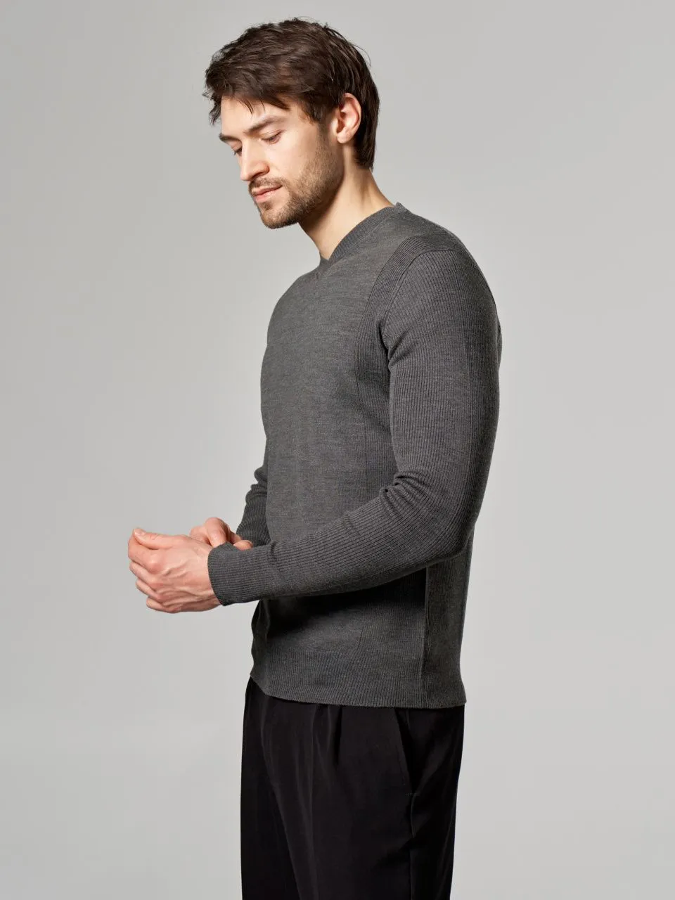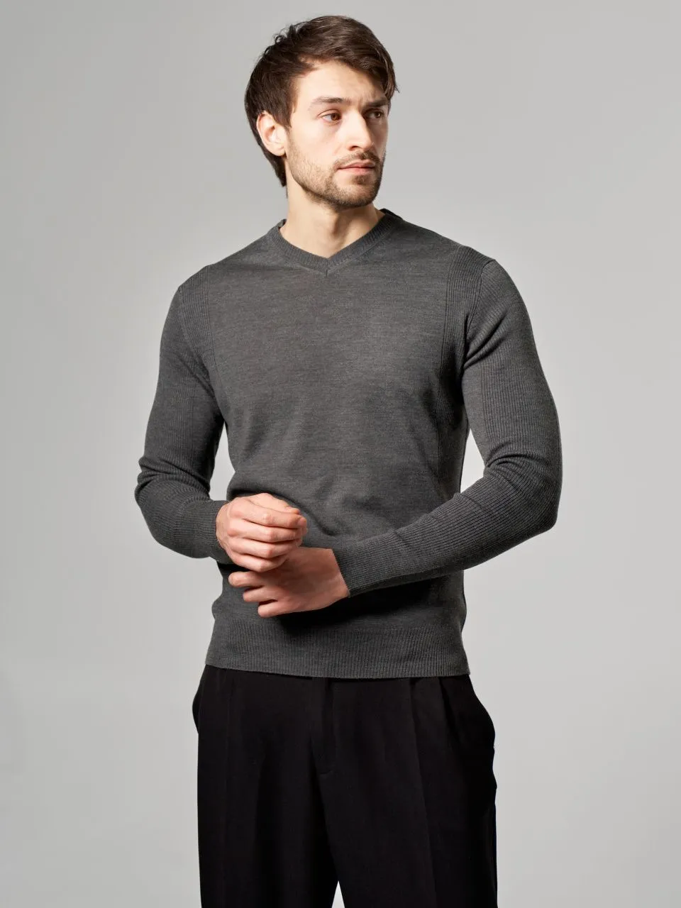 Джемпер с V-образным вырезом из полушерсти