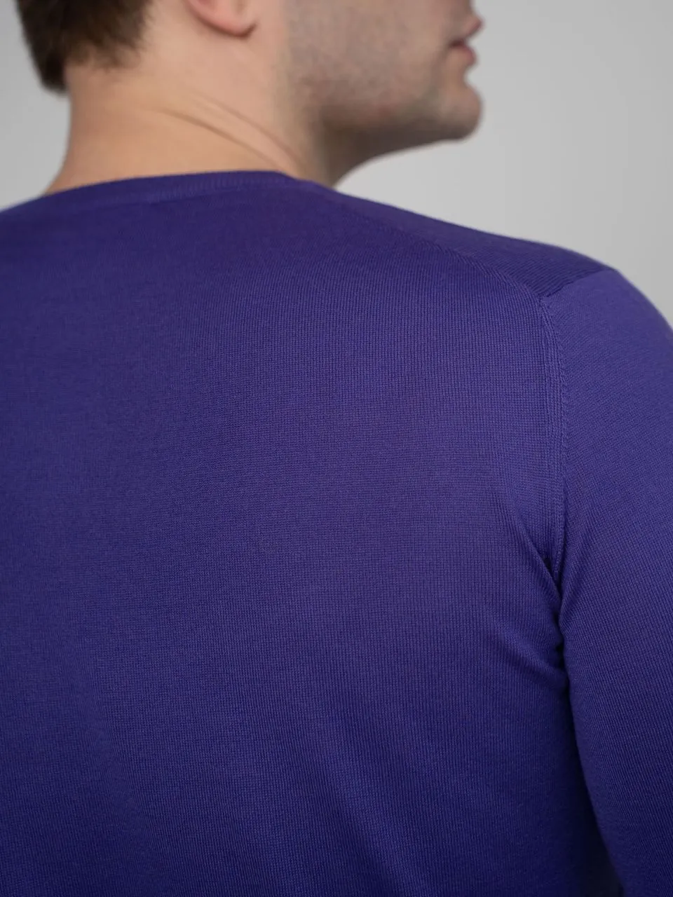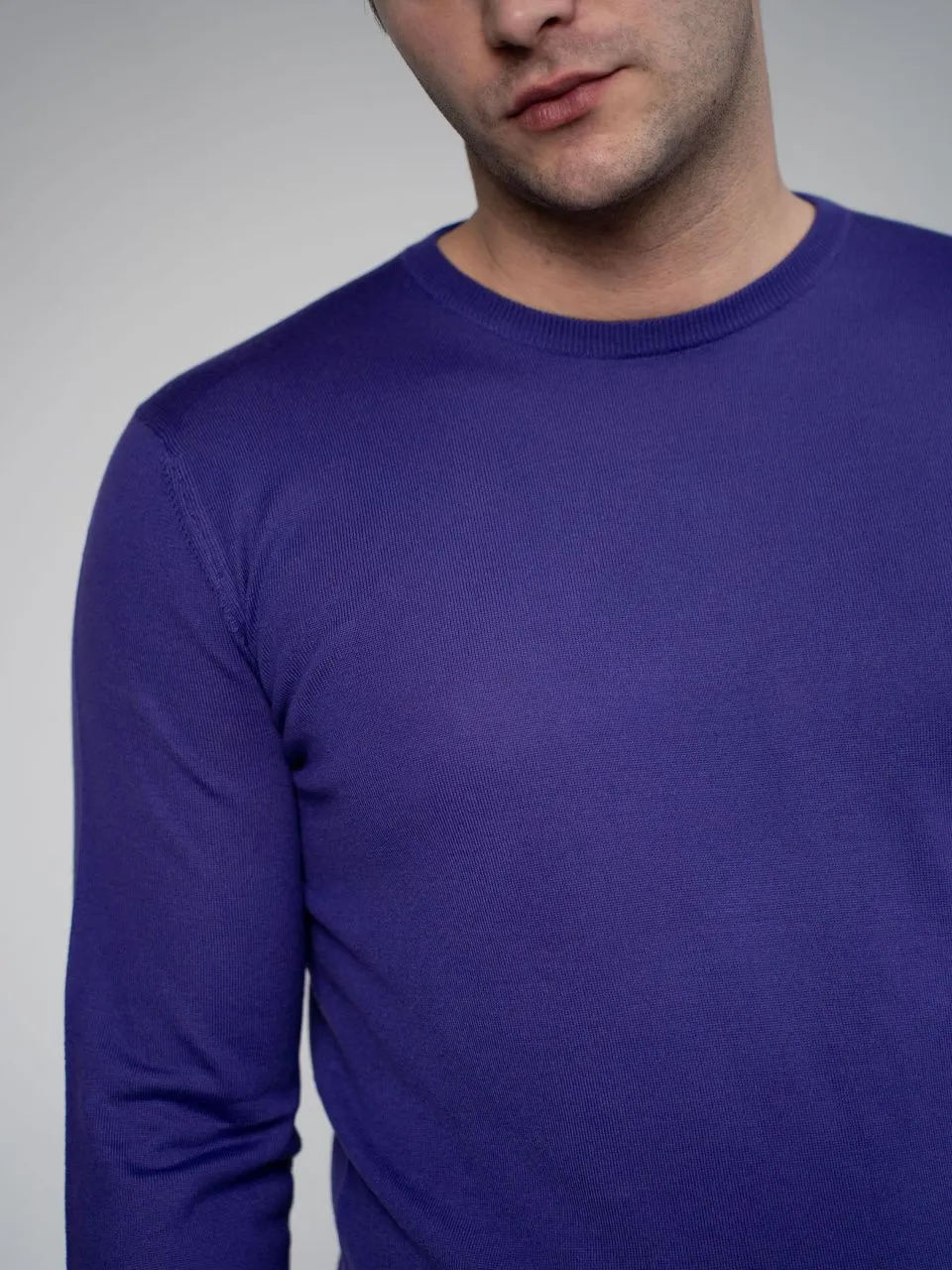 Этот джемпер из итальянской пряжи: 50% гребенной меринос, 50% акрил. Гребенная обработка шерсти делает полотно тонким и гладким, а акрил придает изделию высокую прочность и износостойкость. Джемпер очень приятен на ощупь, не теряет форму и практически не скатывается даже при активной носке. Качество значительно выше стандартных полушерстяных составов.