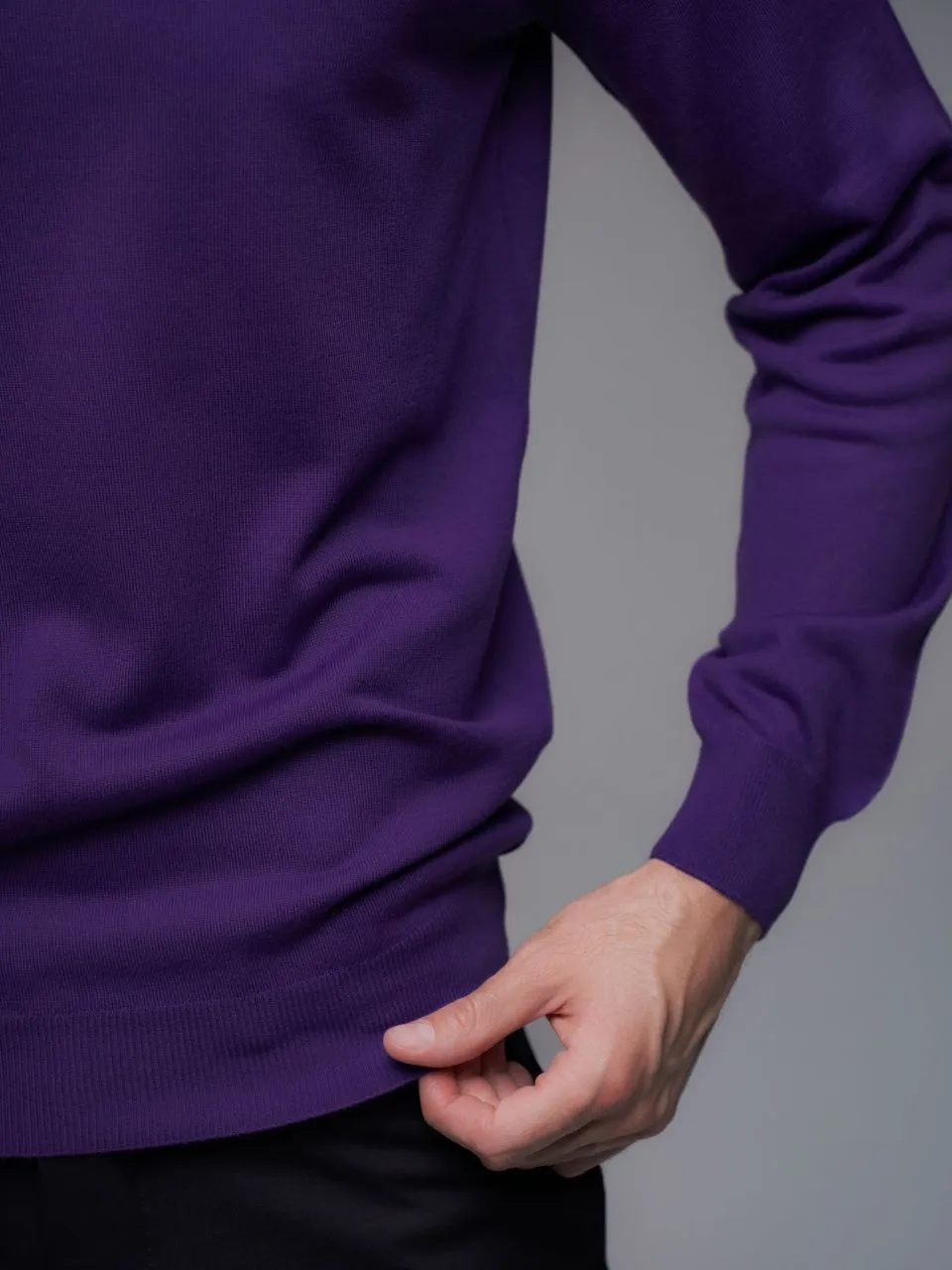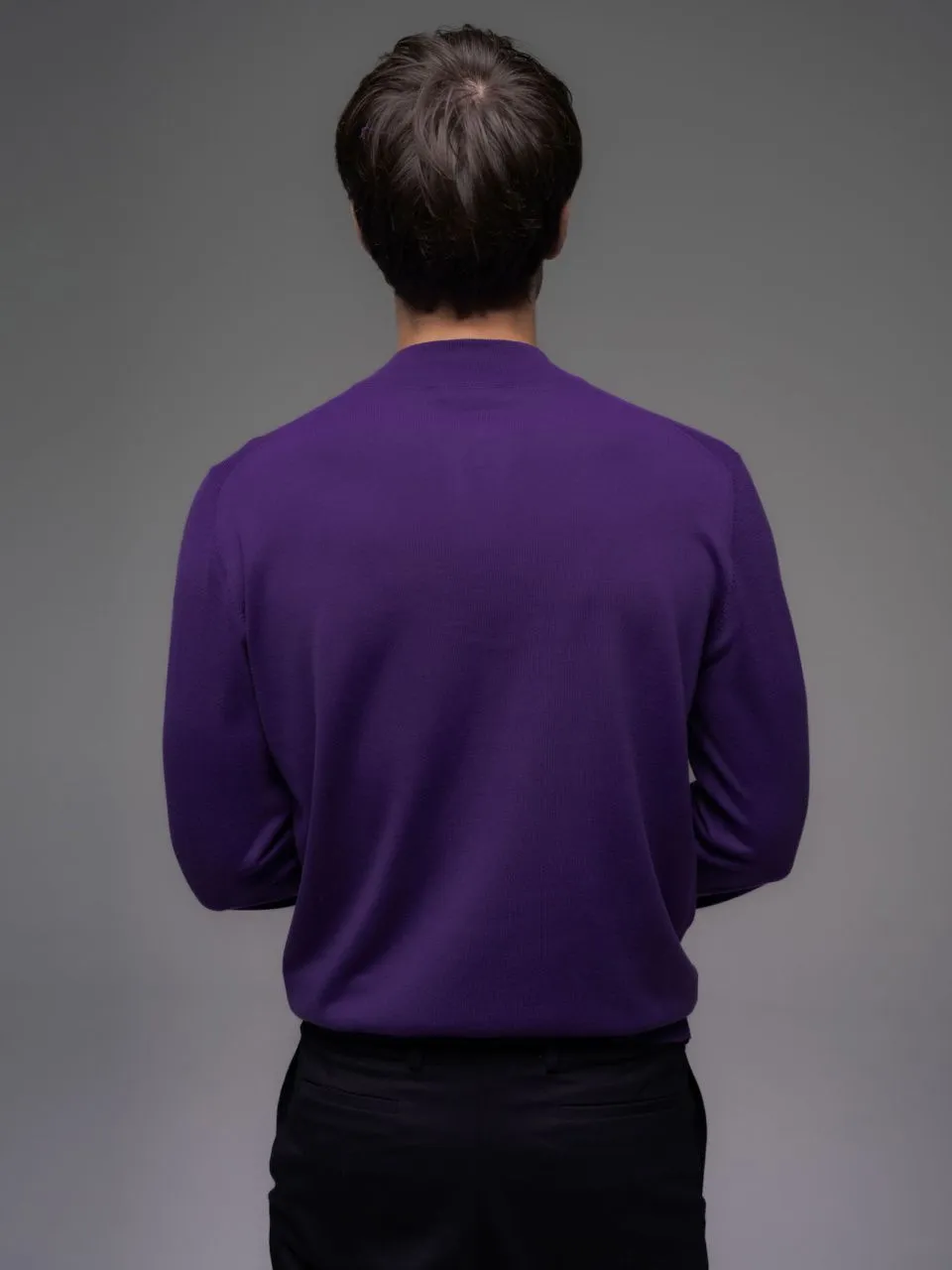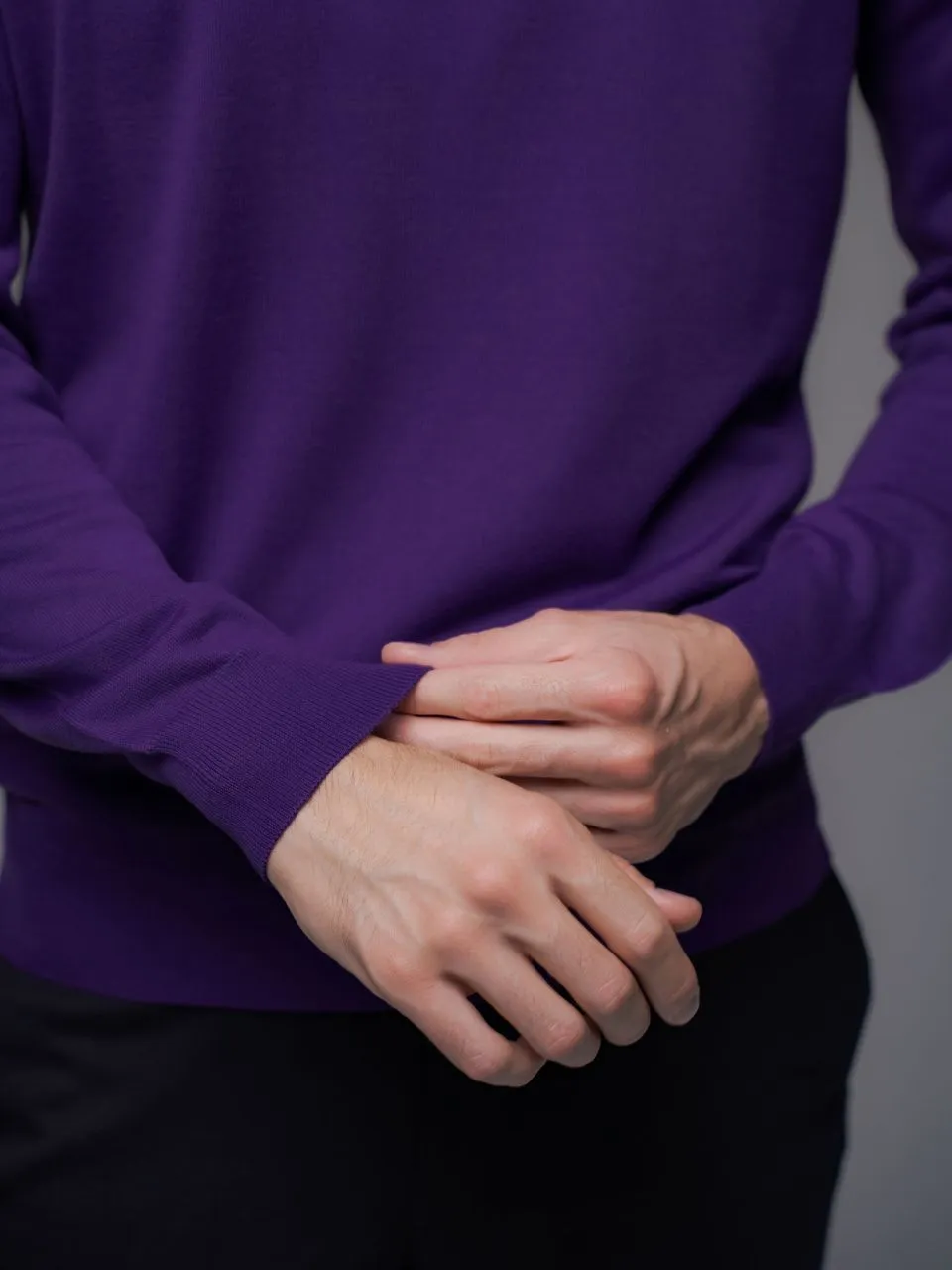 Этот джемпер из итальянской пряжи: 50% гребенной меринос, 50% акрил. Гребенная обработка шерсти делает полотно тонким и гладким, а акрил придает изделию высокую прочность и износостойкость. Джемпер очень приятен на ощупь, не теряет форму и практически не скатывается даже при активной носке. Качество значительно выше стандартных полушерстяных составов.