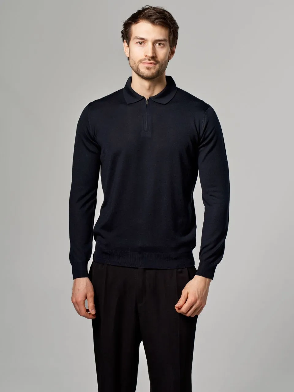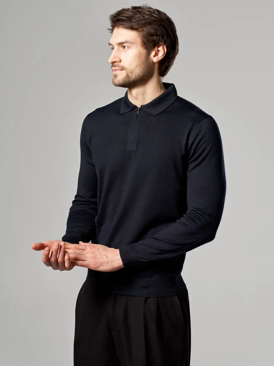 Тонкий джемпер с воротником-поло на молнии из полушерсти