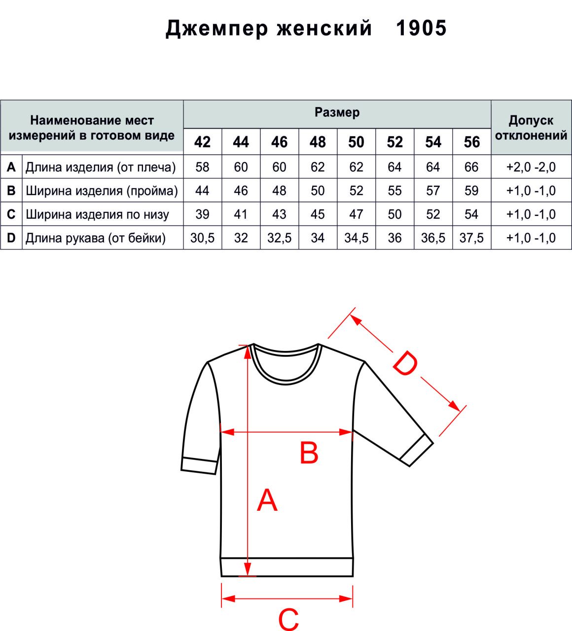 Таблица размеров