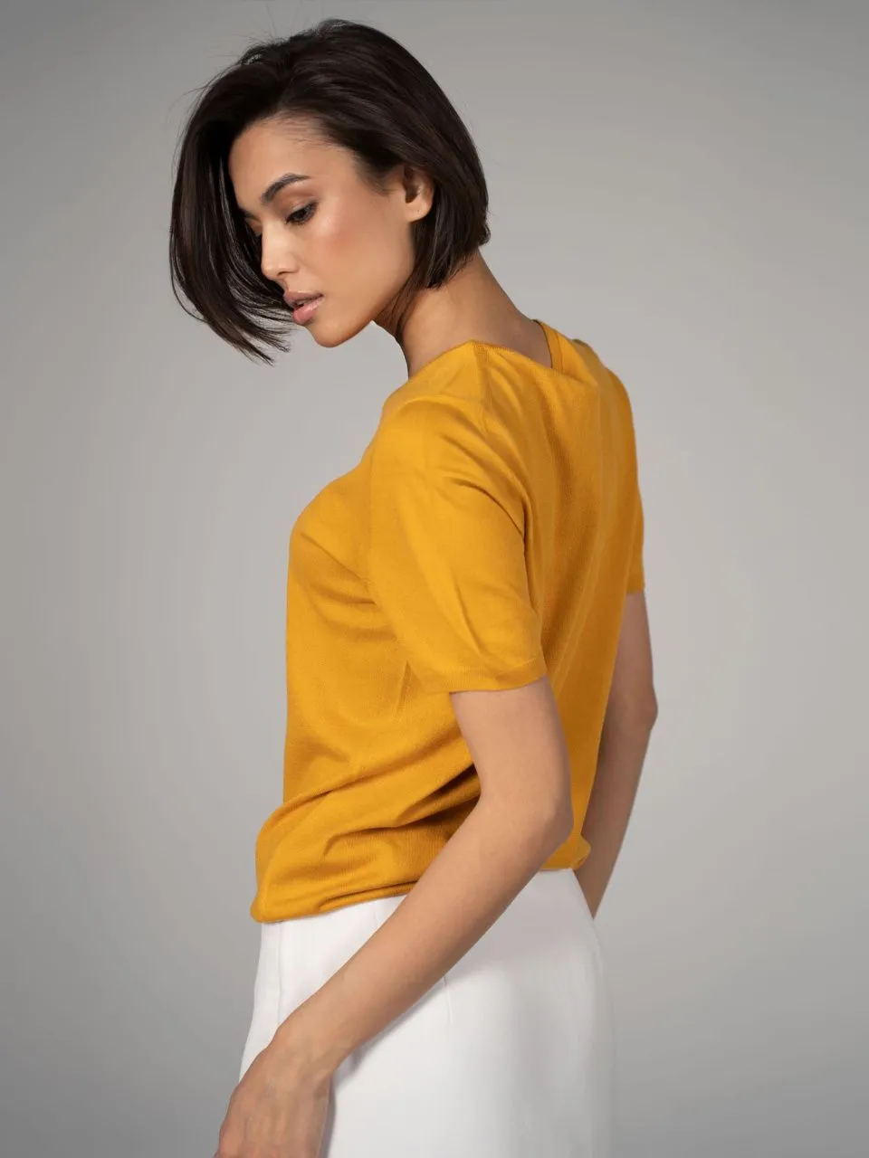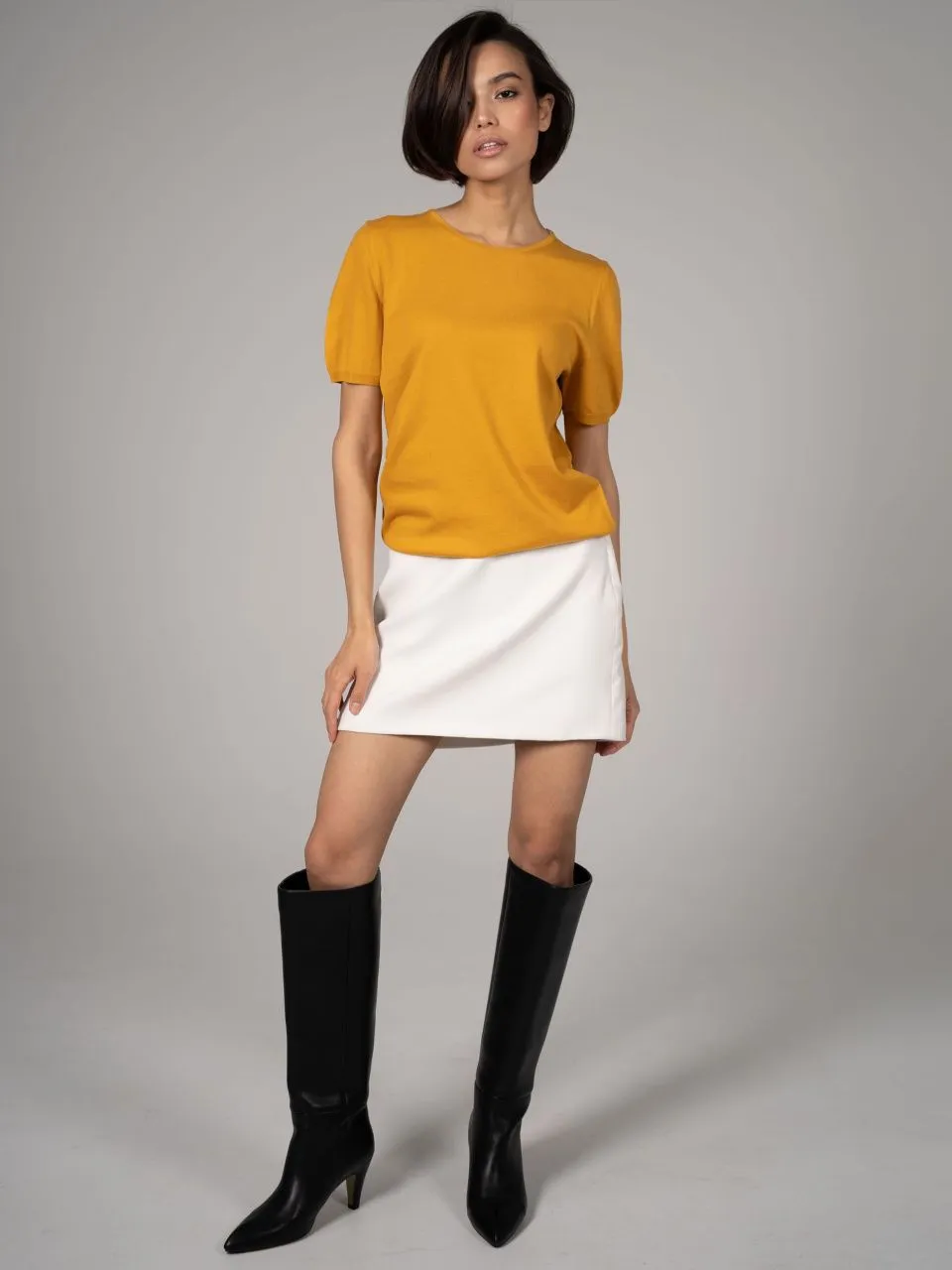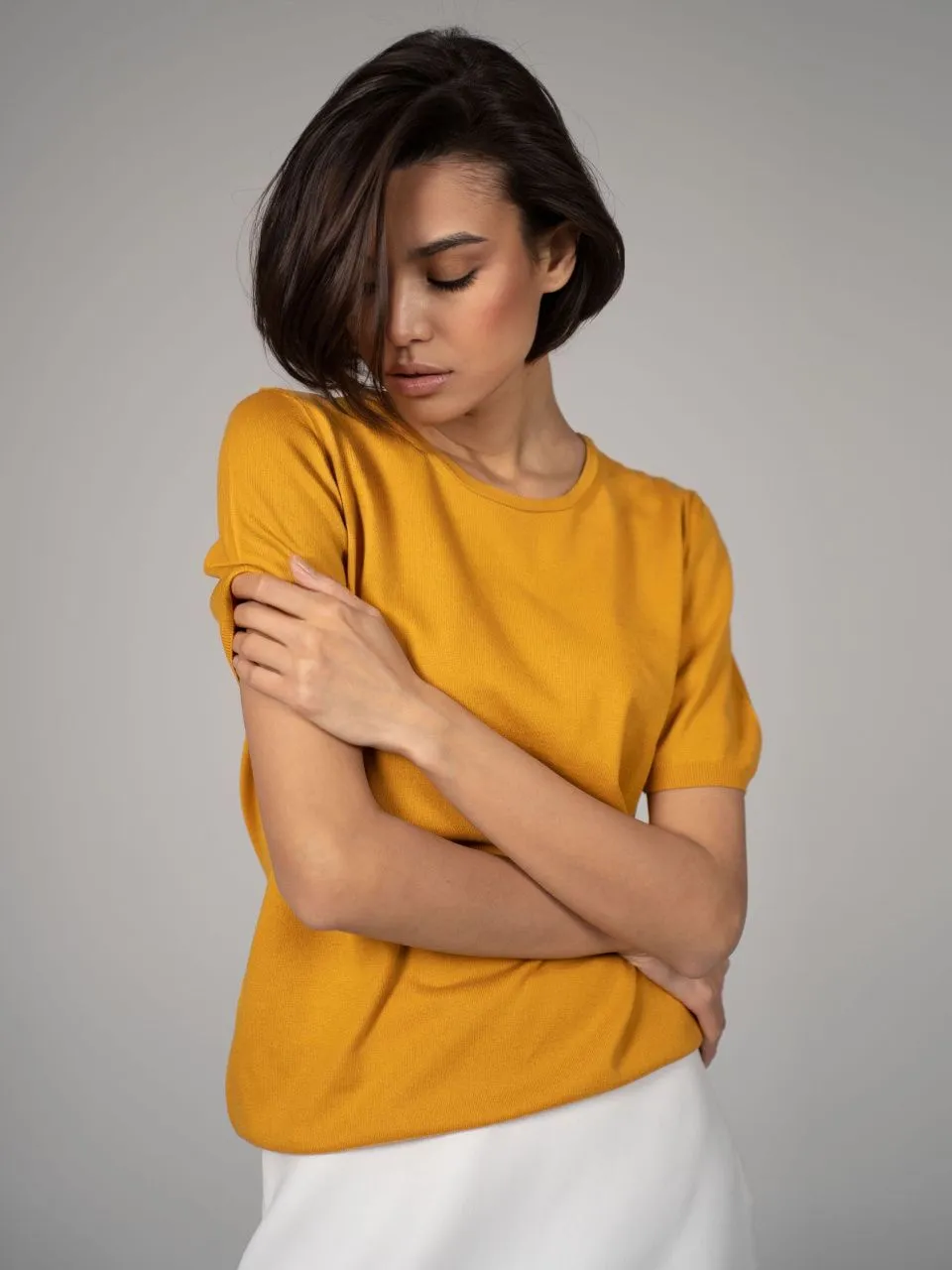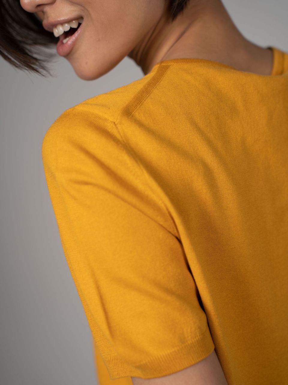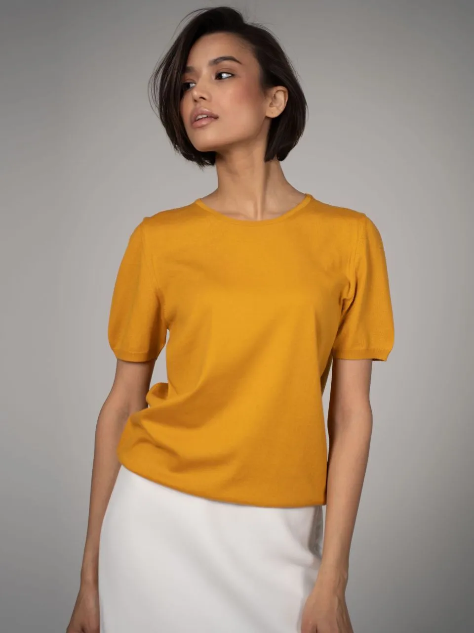 Джемпер с коротким рукавом из хлопка, шелка и кашемира