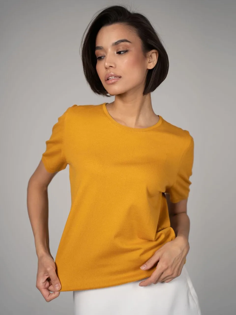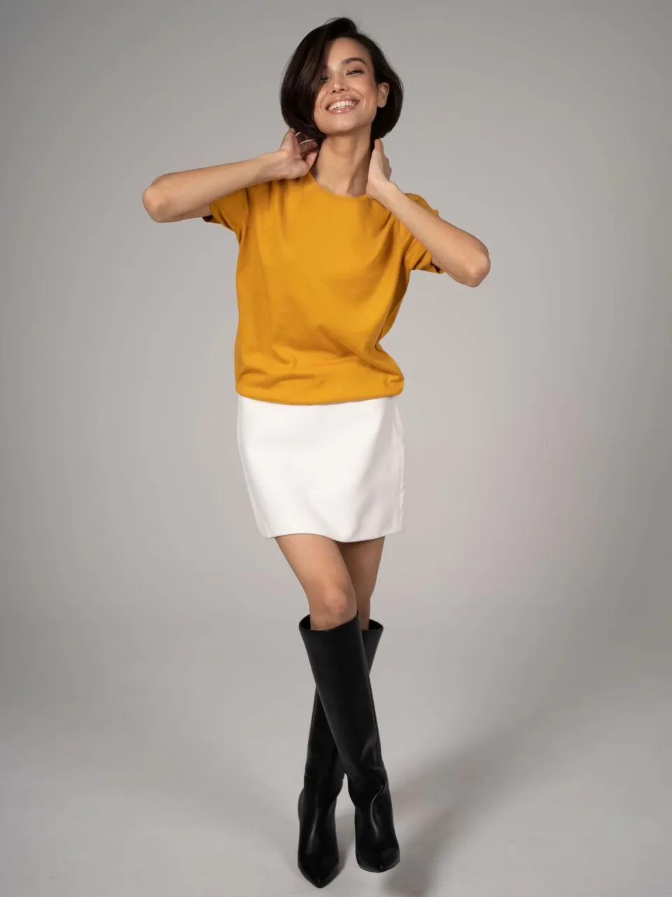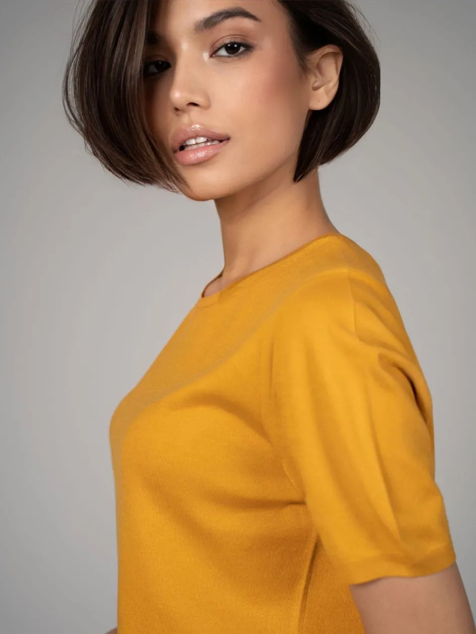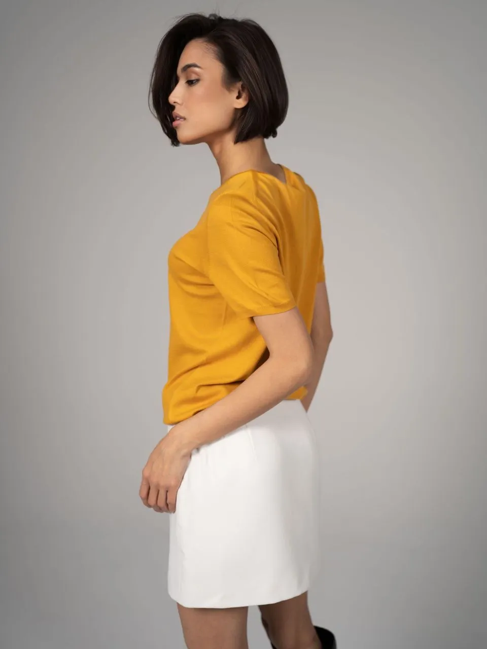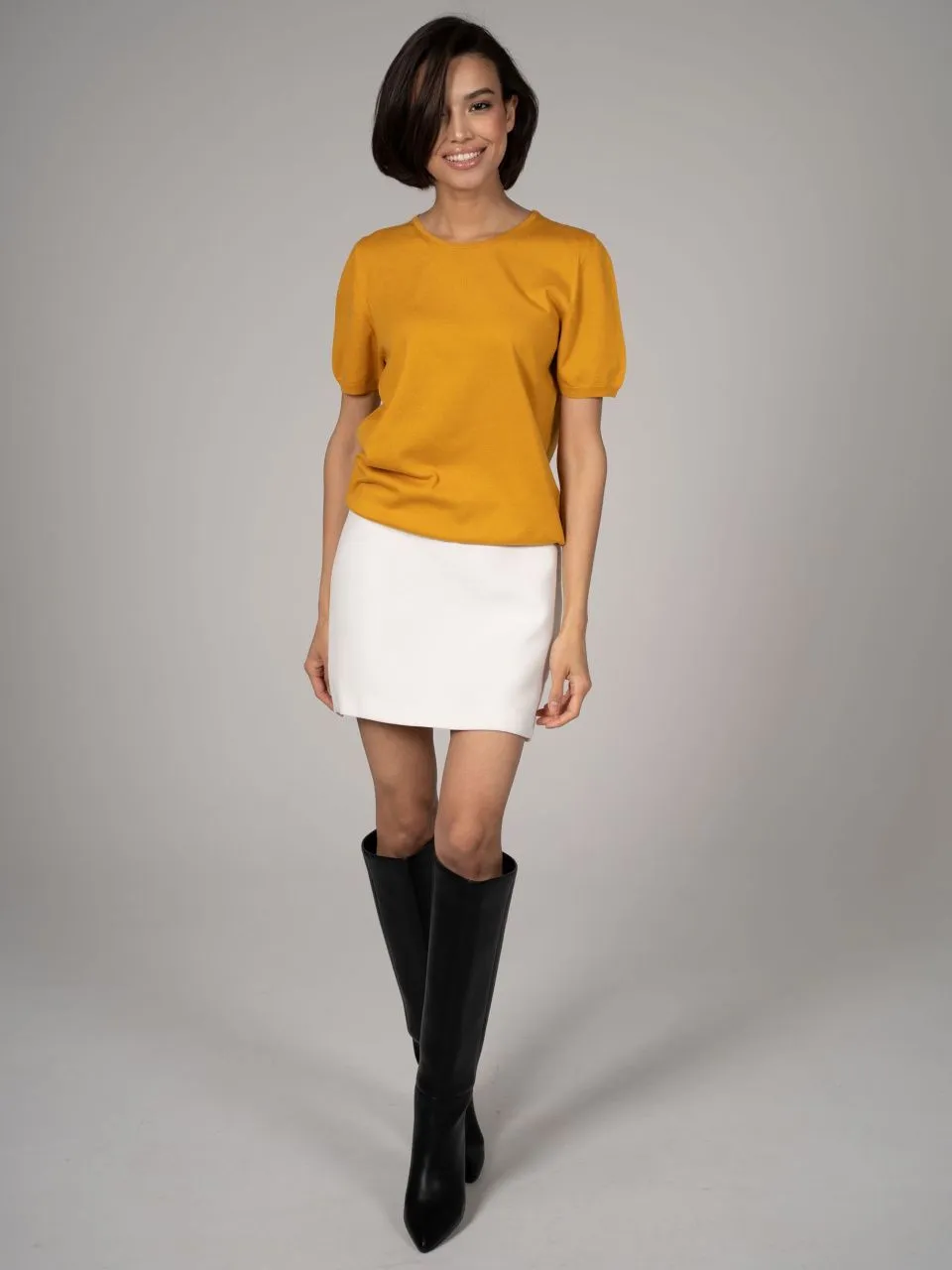 Джемпер с коротким рукавом из хлопка, шелка и кашемира