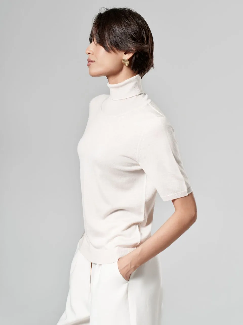 Водолазка с коротким рукавом из шерсти, шелка и кашемира
