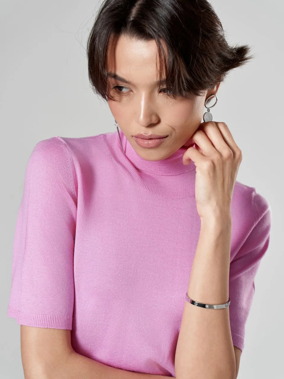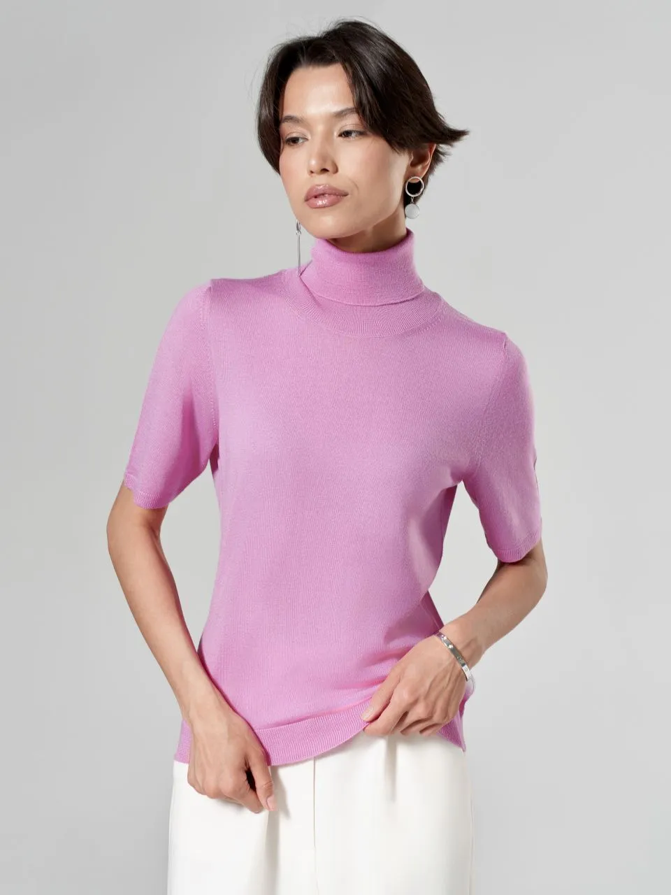 Тонкий джемпер с горлом и короткими рукавами Gerry Ross из шерсти, шелка и кашемира премиального качества.