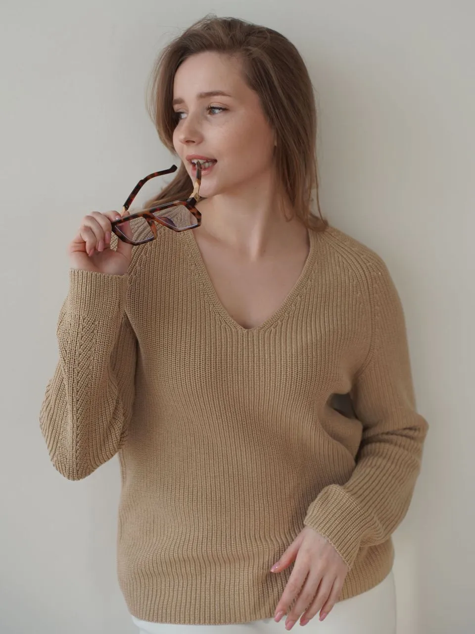Джемпер с V-образным вырезом из итальянского хлопка