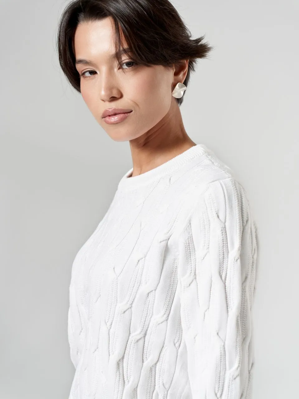 • Рельефная фактура создает эффект ручного вязания, добавляя джемперу особый шарм.