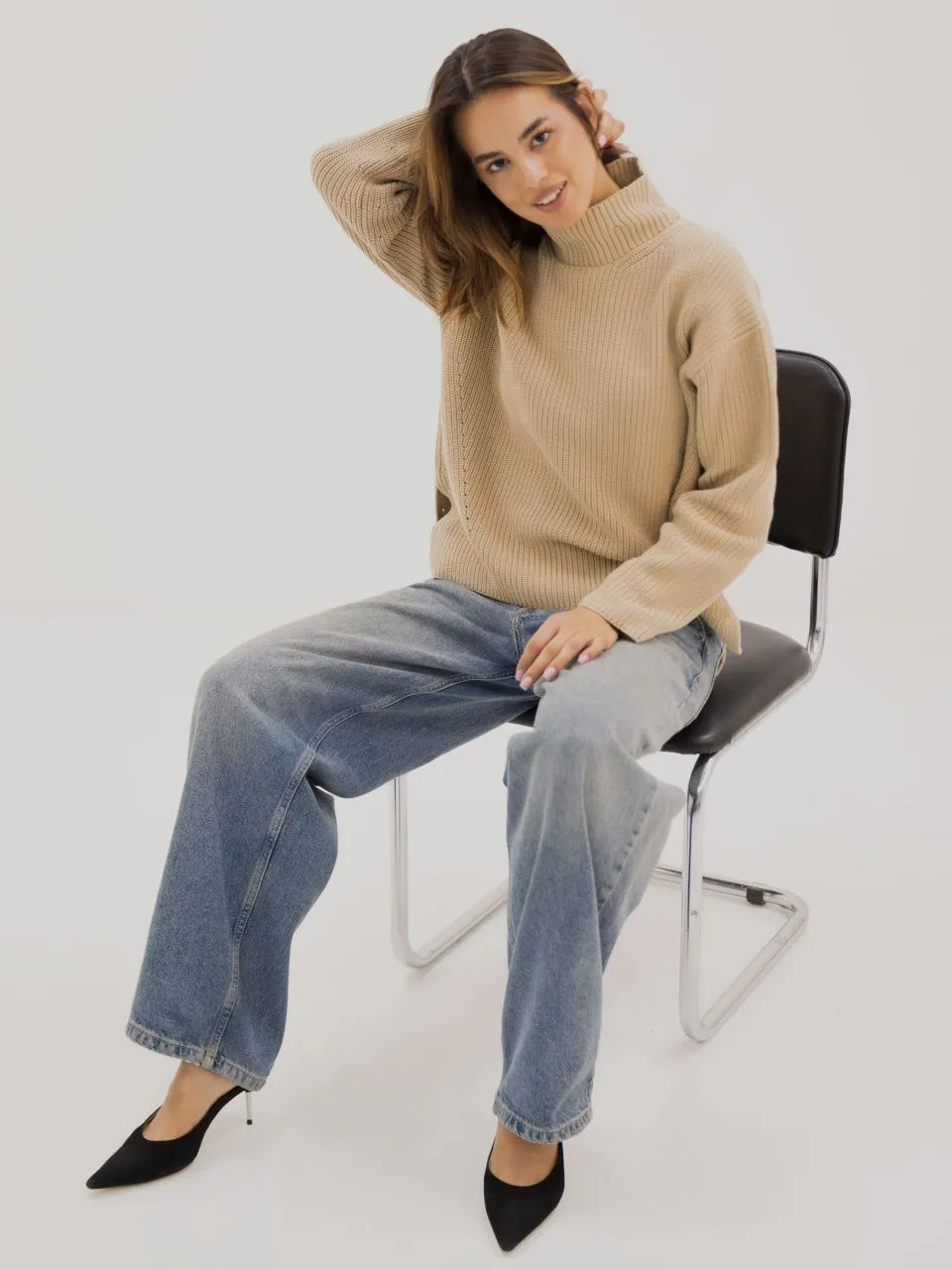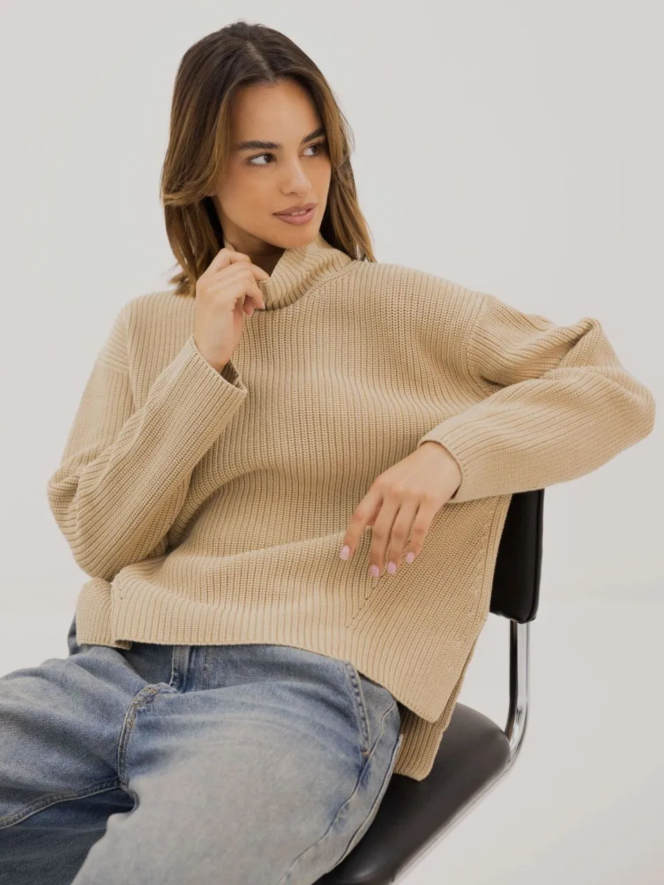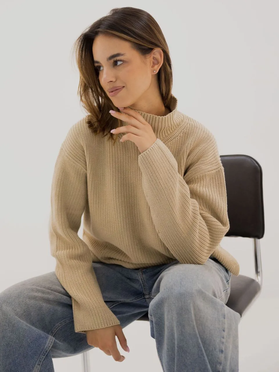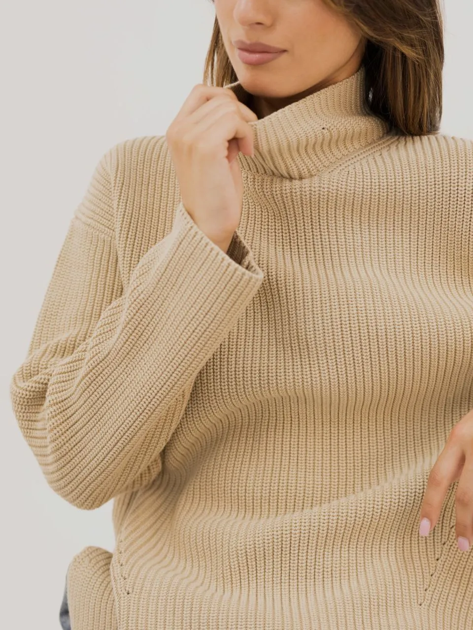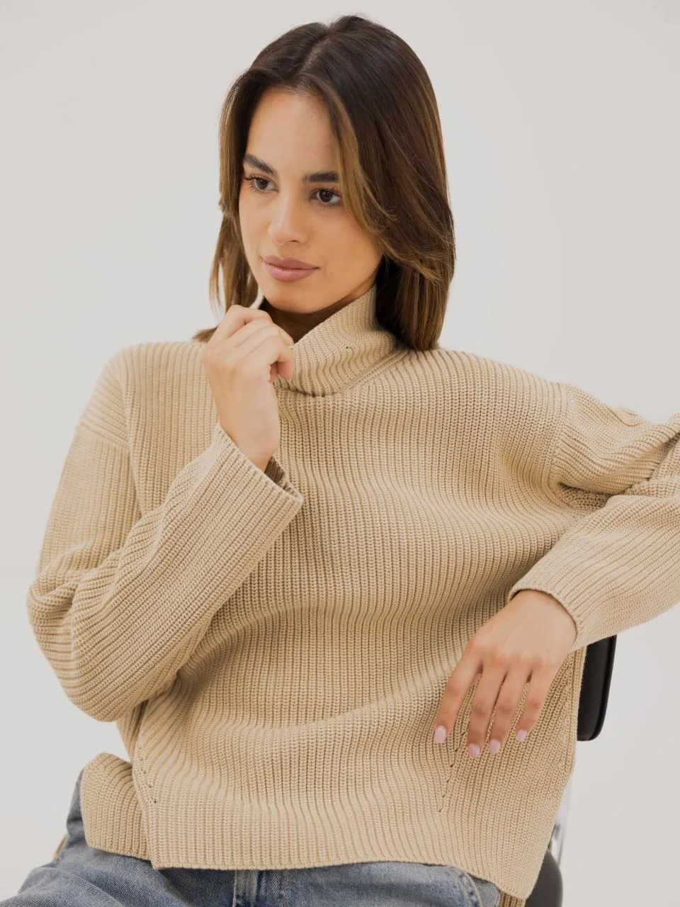 • Выполнен преплетением полуфанг, имеет красивую фактуру и хорошо держит форму. Джемпер крупной взяки - актуальный тренд сезона.