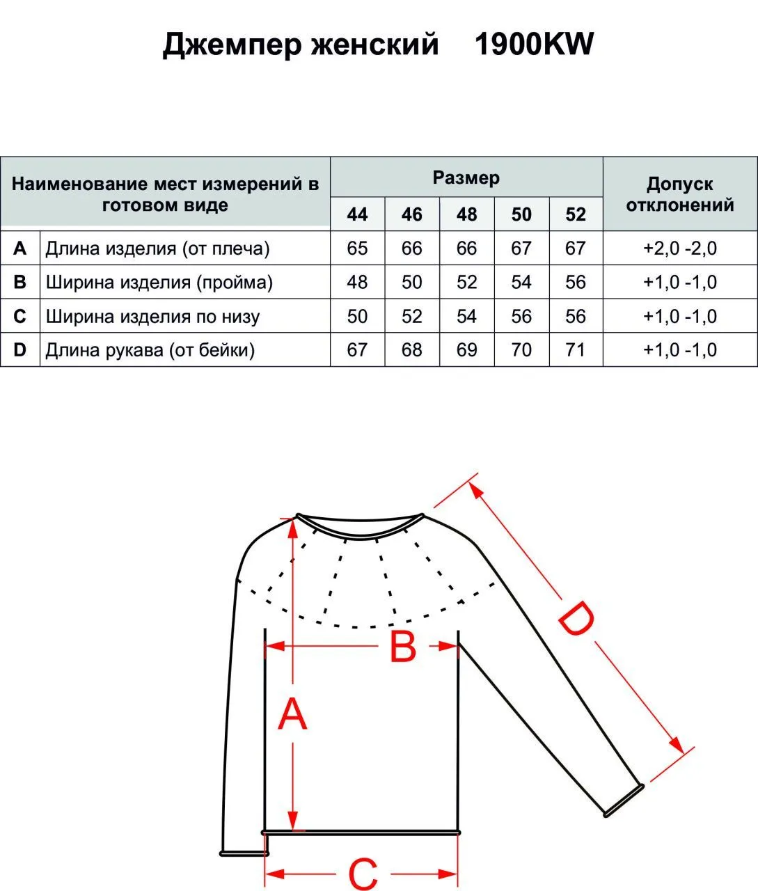 Таблица размеров