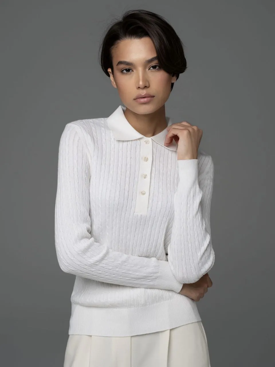 Джемпер-поло Gerry Ross с косами из хлопка и кашемира премиального качества.