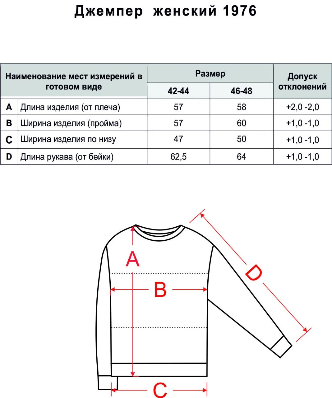Таблица размеров