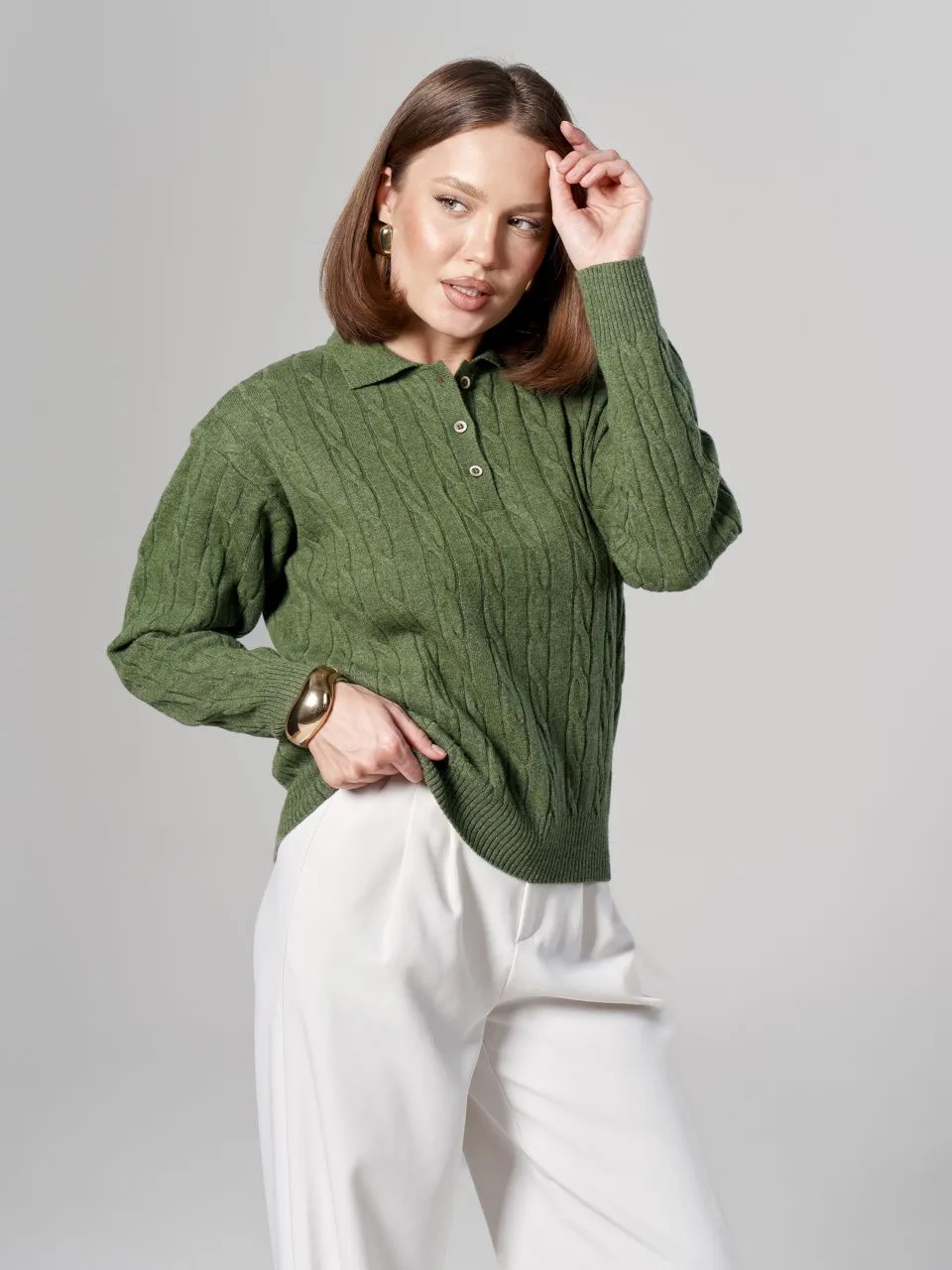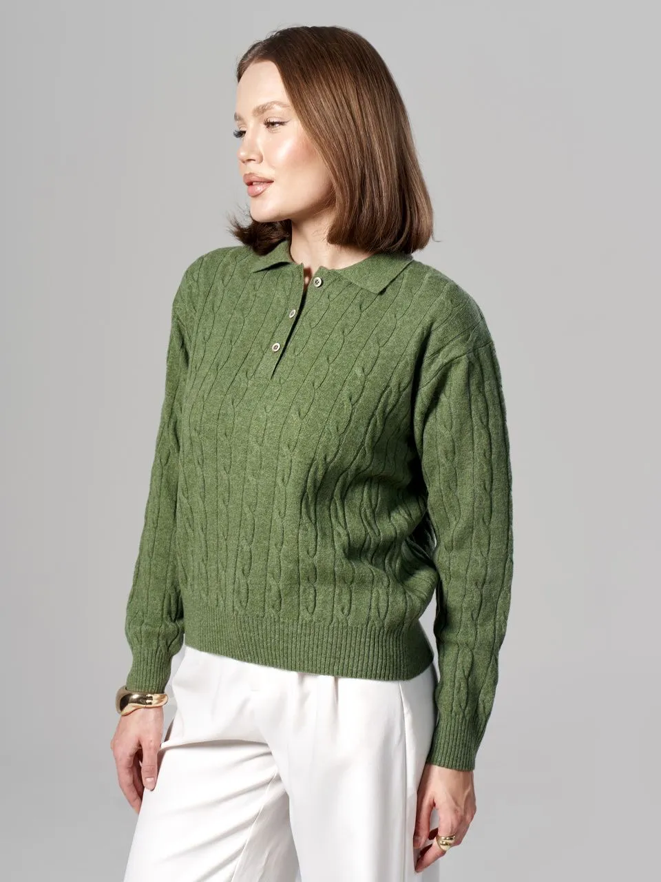Джемпер-поло Gerry Ross с фактурным узором «косы» из шерсти мериноса кардного качества.