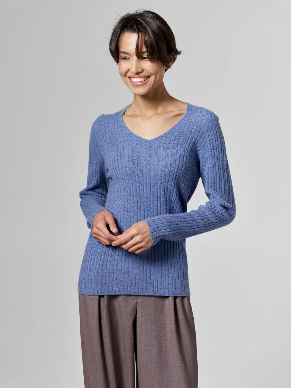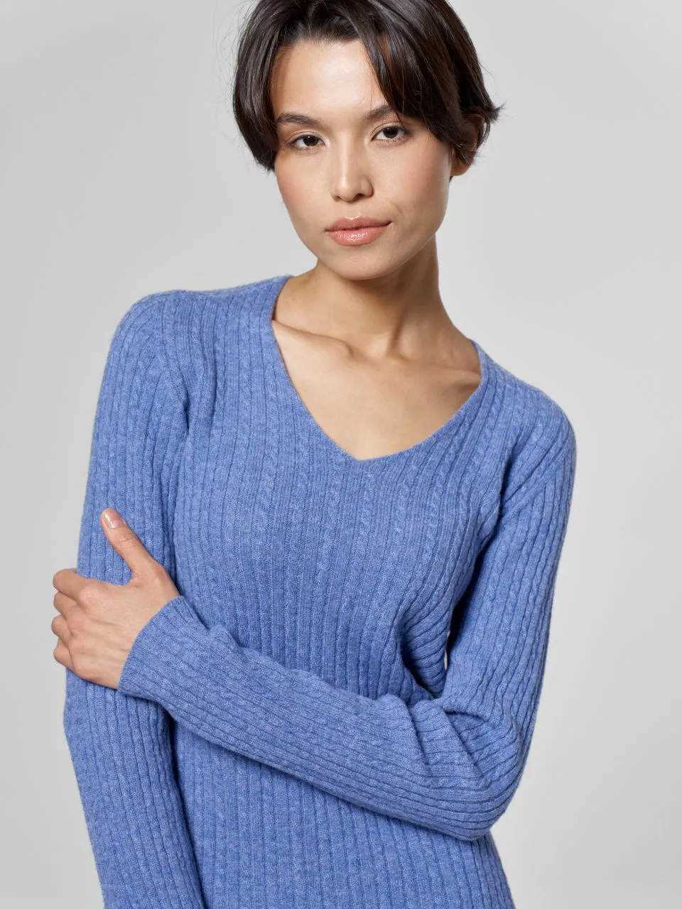Джемпер Gerry Ross с V-образным вырезом и косами из шерсти мериноса и кашемира.