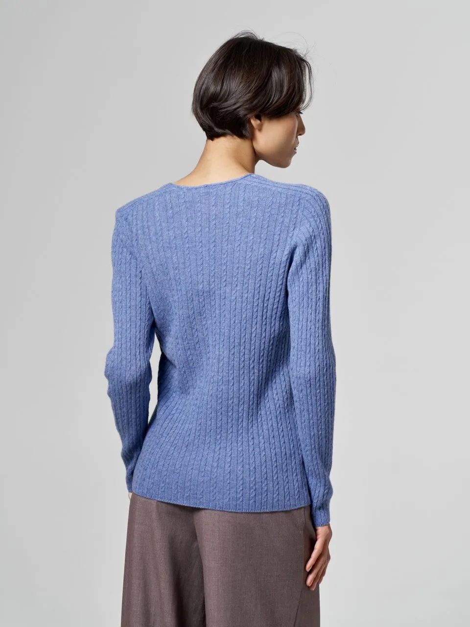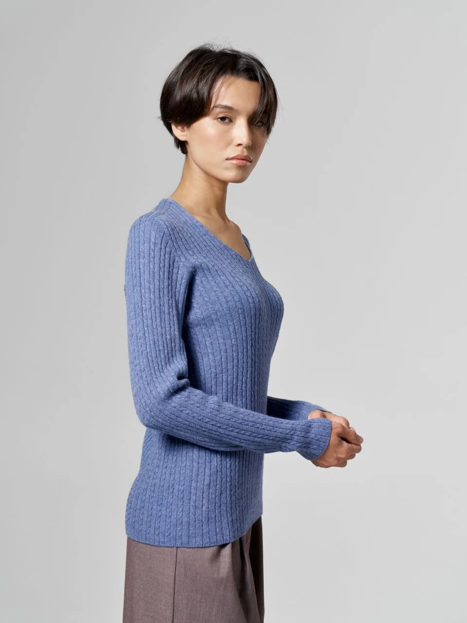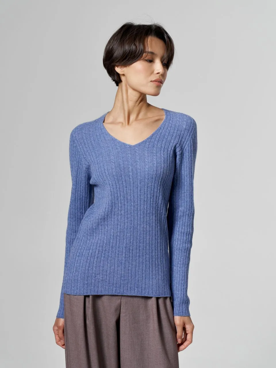 Джемпер с V-образным вырезом и косами из шерсти мериноса и кашемира