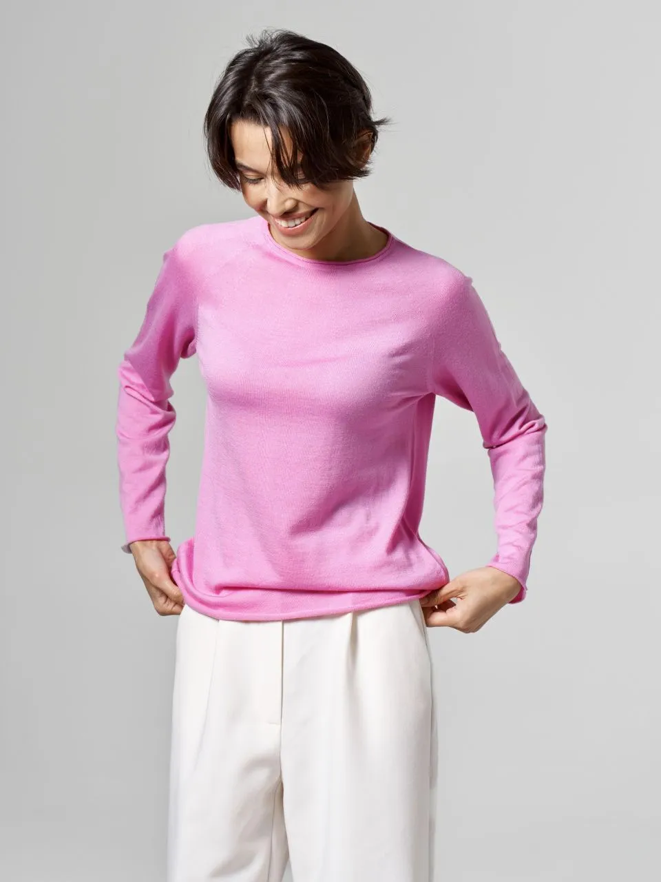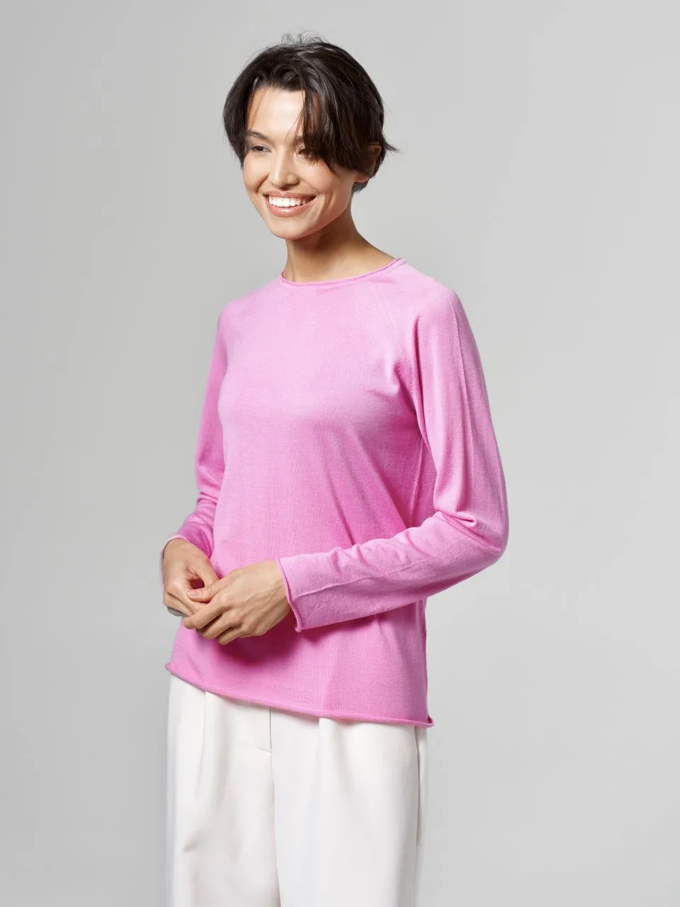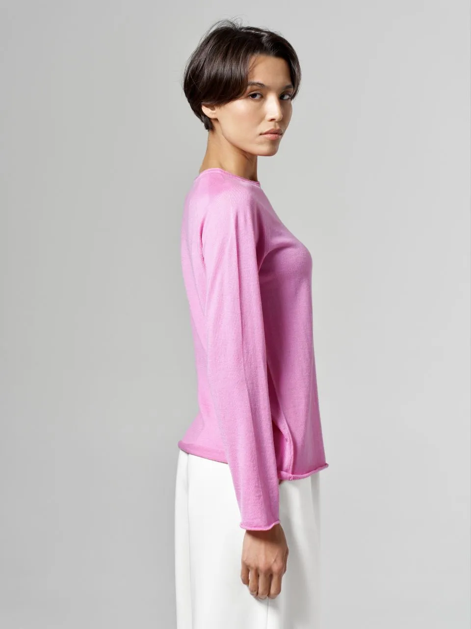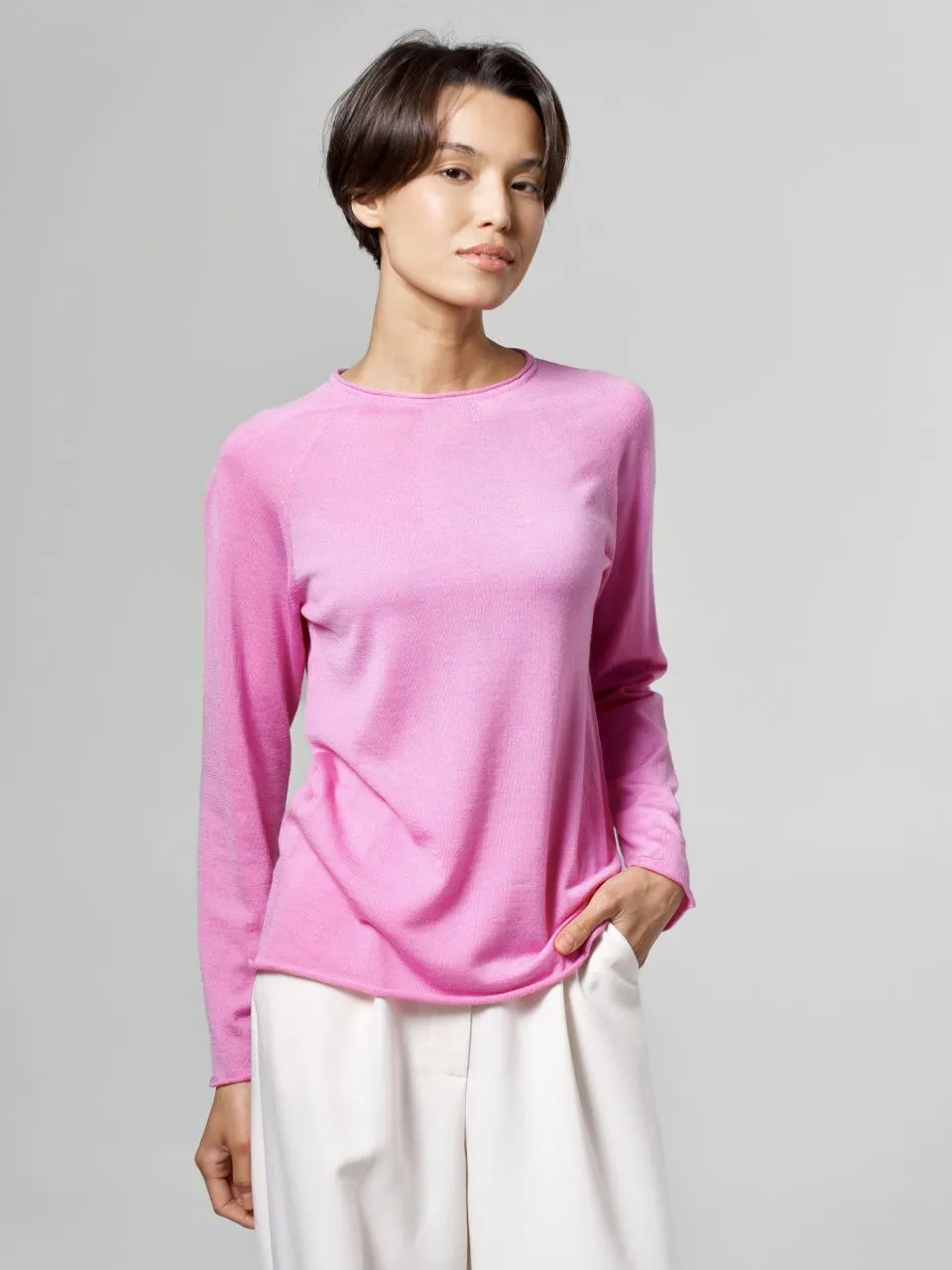 Джемпер-лонгслив из шерсти, шелка и кашемира