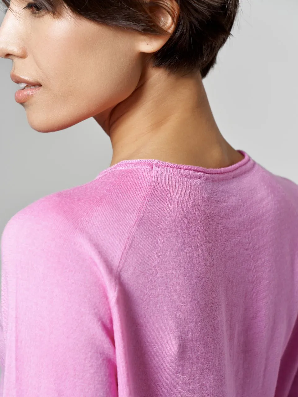 • Круглый вырез горловины с деликатным открытым краем (эффект «рулика»).